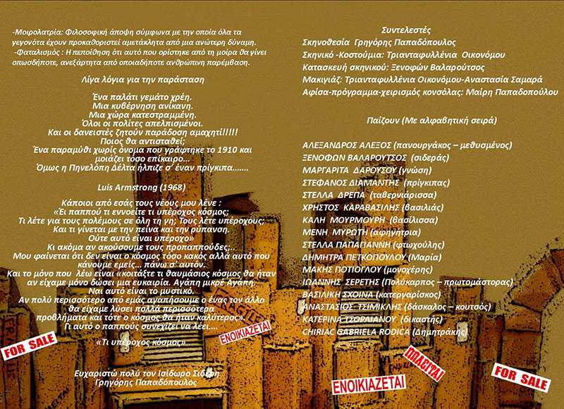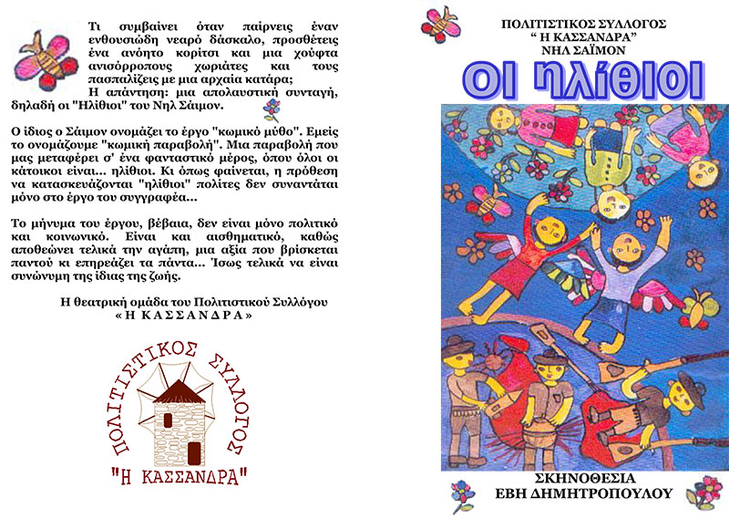 2002-2003 : Θεατρικό παιχνίδι, κουκλοθέατρο και Καραγκιόζης για την Παγκόσμια Ημέρα για τα δικαιώματα των Παιδιών και Θεατρική αφήγηση με τίτλο "Το Ολοκαύτωμα της Κασσάνδρας" σε κείμενο του Δημήτρη Τσιάλα, με αφορμή την επέτειο της 25ης Μαρτίου (αναμετάδοση από το "Ράδιο Κασσάνδρα").
